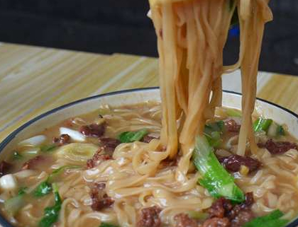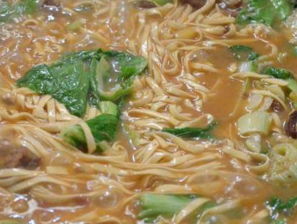 切好的羊肉放入薑片炒一下,去掉膻味,放在一邊備用,面條是直接放在高湯裡面煮的,煮出來的面條非常入味,什麼材料都不用放,面條煮的差不多瞭,放上一點青菜,加上羊肉在煮一會,一碗羊肉面就做好瞭,色香味俱全,沒有一點的膻味,很多吃過的朋友都說:一天吃三頓都吃不膩,一些吃貨還發到網上,很多都是看到後慕名而來的,就為瞭嘗嘗鮮,吃過的都說好吃。