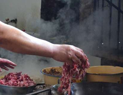 面店老板將殺好的羊肉剔下來,切絲放在一邊備用,骨頭用來煮高湯,羊肉有著很大的補性,還可以治療嘴巴裡長的潰瘍,很多人都喜歡吃羊肉,但是,羊肉有很大的羊膻味,做不好就會還能難吃,但是,面館老板做出來的一點膻味都沒有,味道還非常的鮮美,面館老板在煮骨頭的時候,就放的材料就有十多種,煮出來的高湯沒有一點膻味,高湯看上去就很有食欲,大老遠就能聞到香味,吸引瞭很多的顧客。