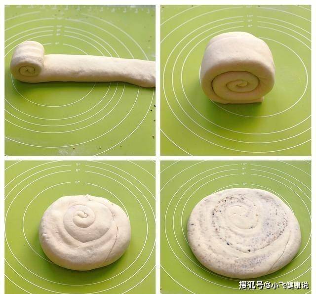 ③折好後,從一端慢慢搟開,蓋住嘴向下,用手壓扁,然後用搟面杖慢慢搟成厚實合適的餅,放入蒸鍋二次檢查,15-20分鐘就夠瞭。發酵完成後,開大火蒸15分鐘。蒸的時間是按照SAIC之後的時間來計算的。——(搟的時候一定要輕柔,這樣面團才不會破。)