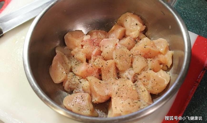步驟1.將雞胸肉去皮,切成一口大小的塊。