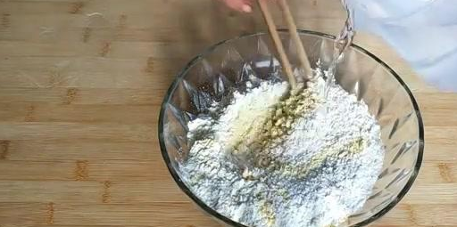 我們用大概40度的溫水和面邊倒邊攪拌,把它攪拌成面絮狀之後用手把它揉成光滑的面團,之後蓋上保鮮膜密封醒發40分鐘。