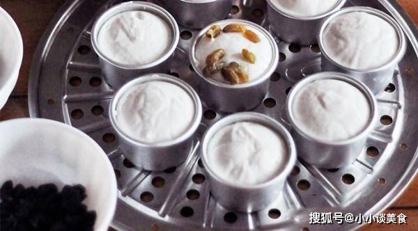 將酒釀攪拌均勻,放入小模具或碗中,再次發酵,約20分鐘。發酵後,它看起來是原來的兩倍大。為瞭增加風味,我們可以放幹果、堅果,我放葡萄幹。