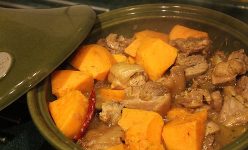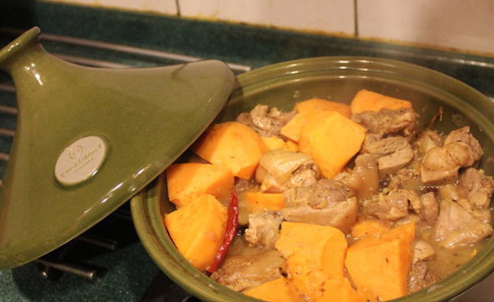 想瞭很久卻一直買不下手的塔吉鍋,趁百貨公司周年慶買一送一的活動,給搬瞭回來。今天開鍋第一菜,就照著附送的食譜來煮個甜甜口味的蜂蜜地瓜燉雞。原來雞肉和它才是天生一對,一起燉著吃,減肥美容效果翻倍!