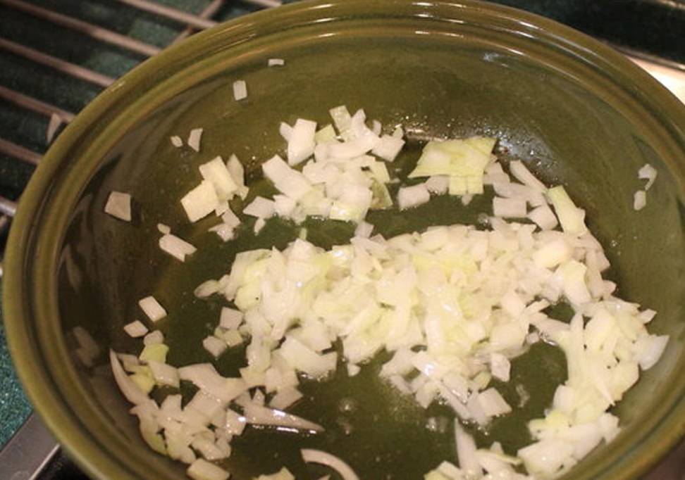 Step2.中火預熱鍋子,放入橄欖油加入洋蔥炒至透明。