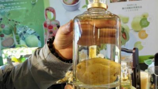 因為這水果酒裡面,赫然放著一顆完整的梨子!我們看裝著這一整顆梨子的酒瓶,瓶頸細細長長,梨子是絕對無法通過的。再開酒瓶的底部,也沒有任何可以開啟的痕跡,是完好的一隻酒瓶,那麼問題來瞭,這顆梨子是怎麼放進酒瓶裡的呢?