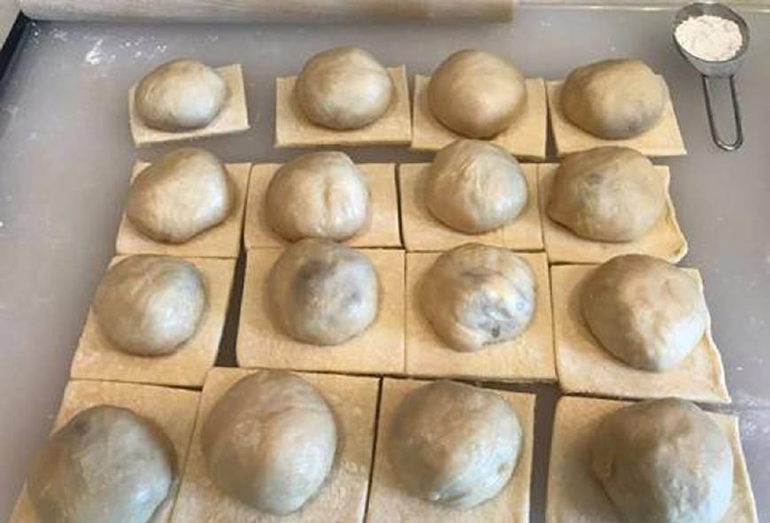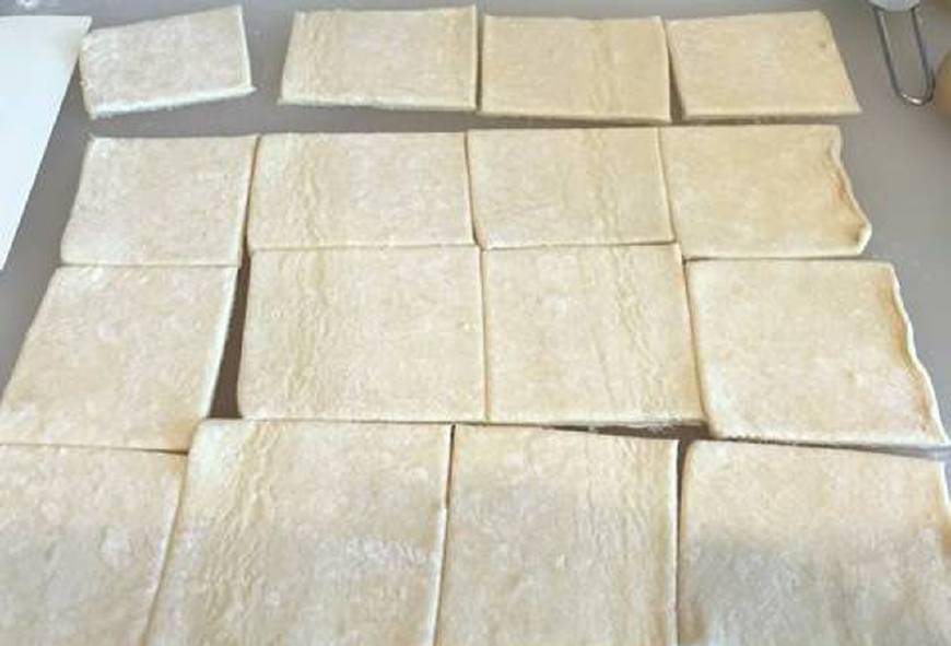 6.將解凍的酥皮輕輕搟開,分成16等份。