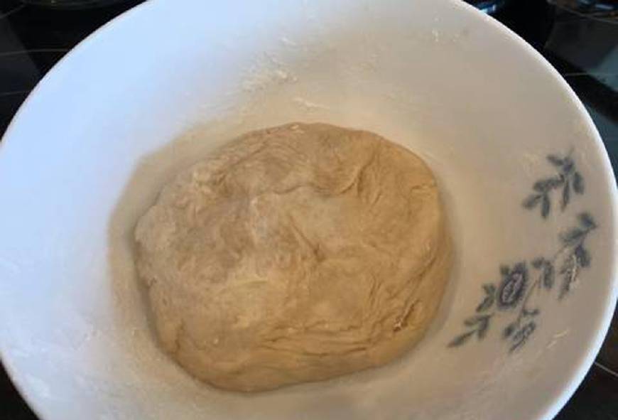 3.按照說明解凍餅皮,同時做油皮,把油皮的所有材料混合,揉成面團,靜置30分鐘。(油皮會很軟很粘)