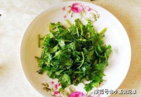 第一步,香菜切碎,放入大碗中,加入少許辣椒油、生抽、醋和糖,最好用陳醋,香氣會更濃;