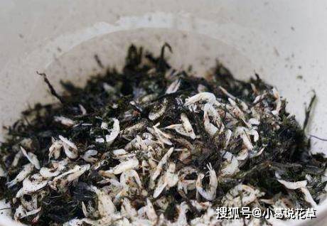第五步,將蝦皮和紫菜混合。如果紫菜需要煮熟,記得拿去海棠,把紫菜放進去煮一會再吃。