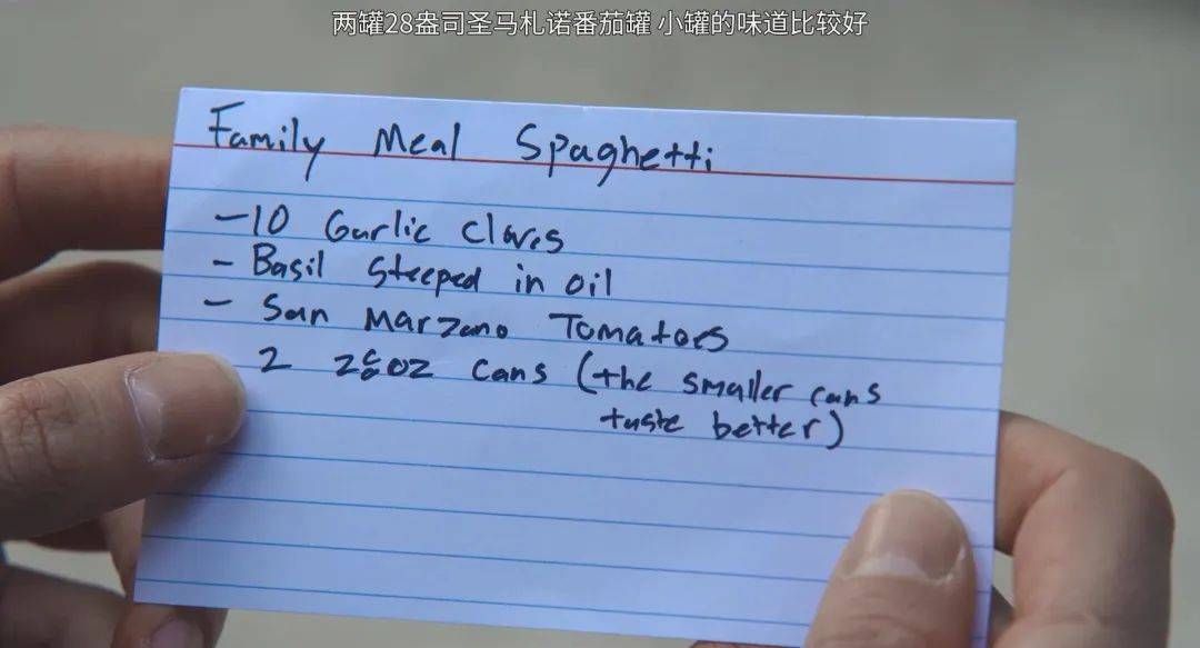 第一季結尾,男主發現瞭哥哥留下的遺書,裡面寫著一張員工餐的配方,其中特別強調要用小罐的番茄醬。