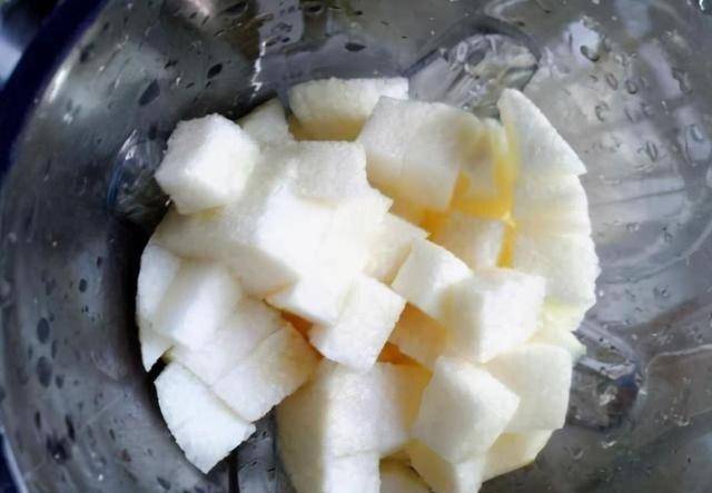 制作過程:第一步:將梨去皮去核,切成小塊,將切好的梨放入料理機中,加入150ml水,開始榨汁程序;