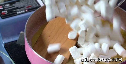 8.加熱黃油,黃油融化成液體後,加入棉花糖