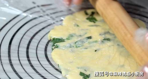 5.將面團放在案板上,搟成2mm厚的餅皮