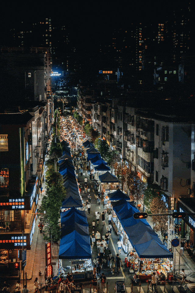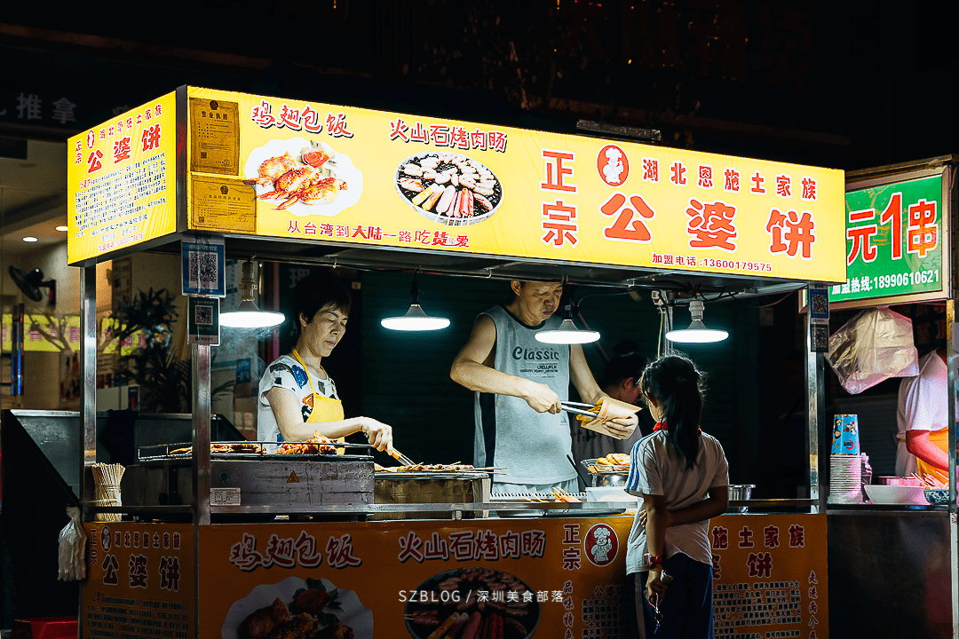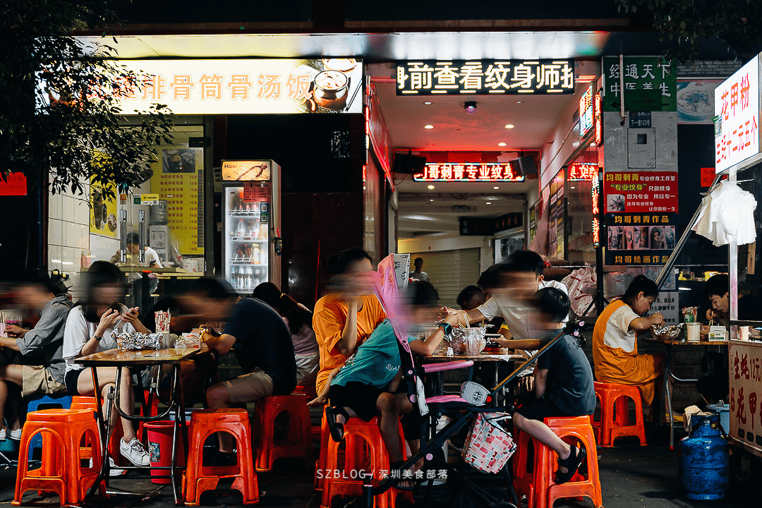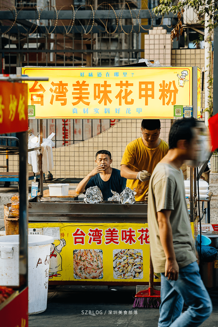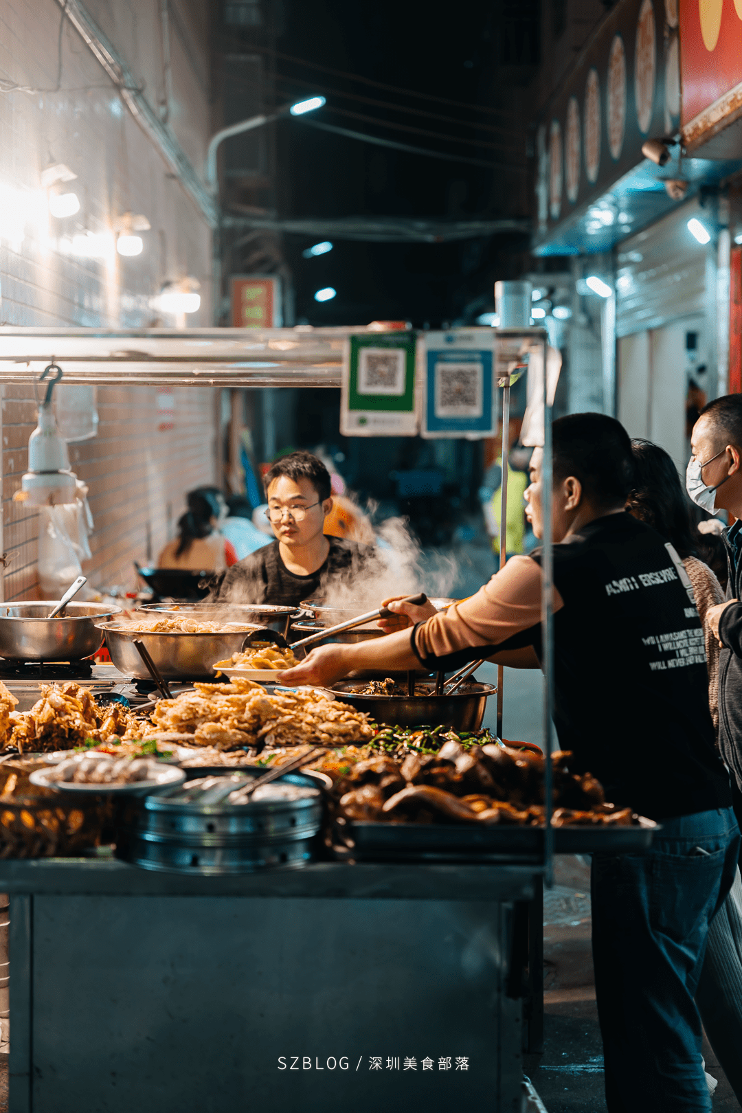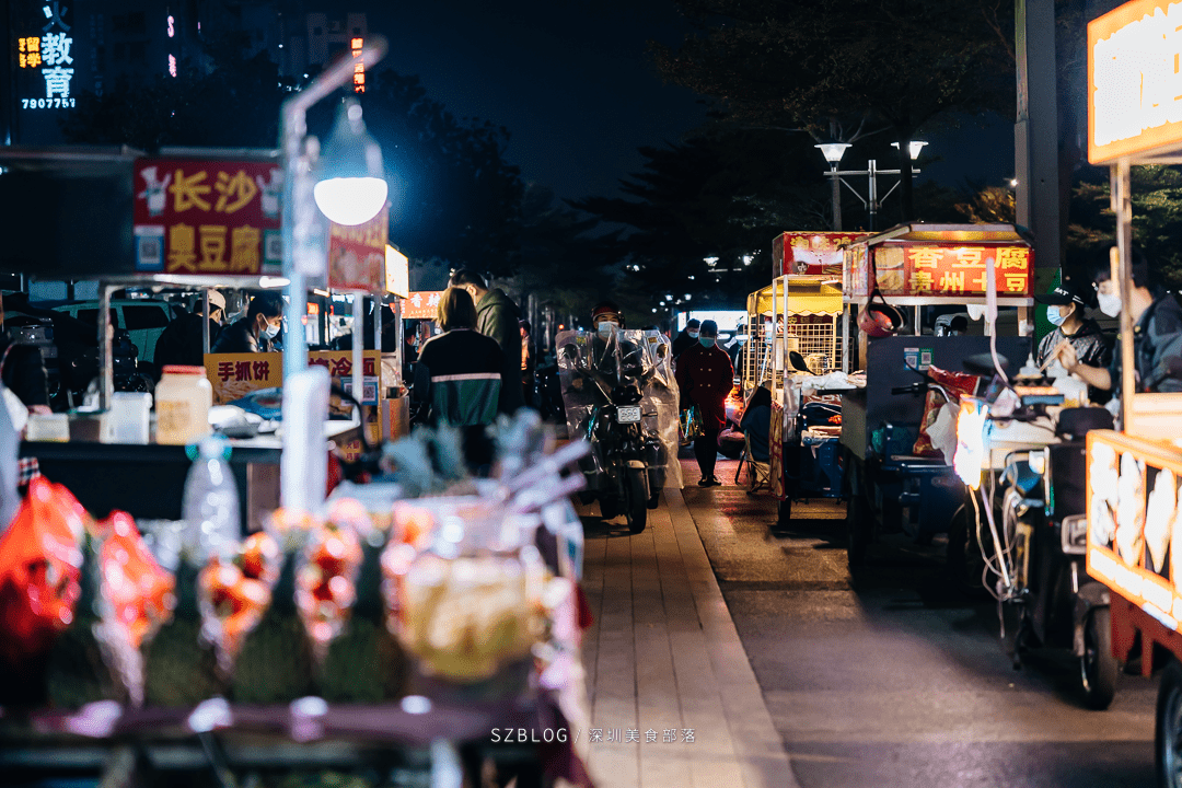 6點到9點,是這裡的第一波客流高峰,居住在寶安的上班族們到點從格子間出逃,疲乏卻依然熱烈地投入生活的懷抱。下班的打工人穿梭在喧鬧聲中,放松地在這條短短的步行街花個十幾塊錢,用簡單無比的美食,慰藉自己辛勞一天的疲憊靈魂。