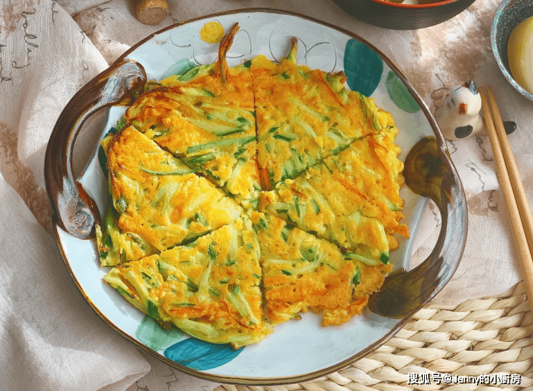 最後給平底鍋刷油燒熱,倒入面糊,小火烙幾分鐘,定型後翻面,烙到兩面金黃即可。
