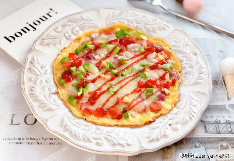 待底部焦黃、奶酪化開瞭,就可以盛出瞭,擠點沙拉醬或者番茄醬開吃。若傢裡人多就多做幾個。也可以做成不同蔬菜的。