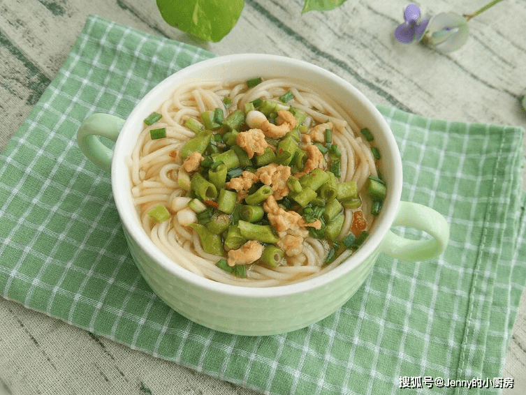 鍋內加水,大火煮開,放入面條煮熟。最後將面條盛進碗中,澆上豆角肉末,攪拌均勻即可食用。喜歡吃辣可以放些辣椒油進去。