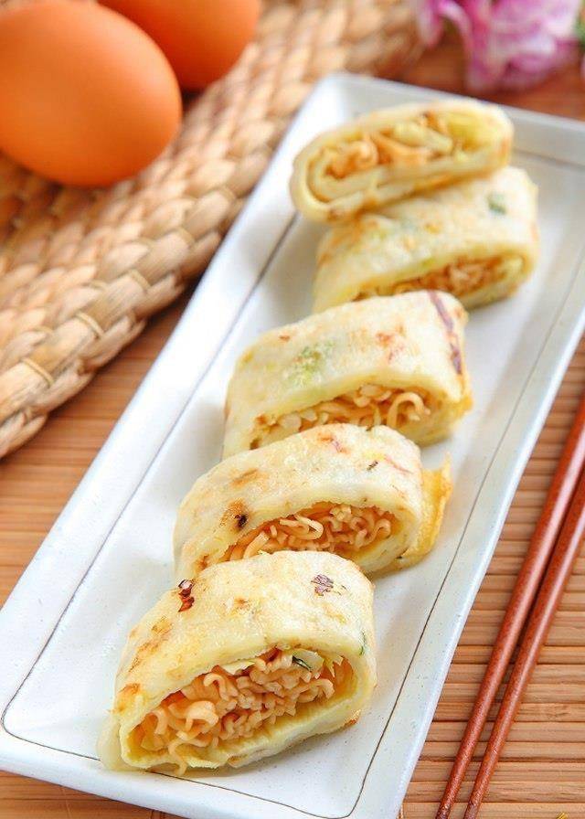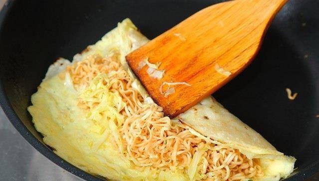 蛋餅皮1片、雞蛋1顆、泡面1包、高麗菜絲20g