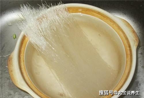 第一步:取出粉絲。首先,我們需要控制粉絲的長度。用剪刀將粉絲剪成所需的長度,然後將粉絲放入溫水中。浸泡過程中如果水中有雜質漂浮,要清洗幹凈,待粉絲變軟後撈出,瀝幹粉絲中的水分。