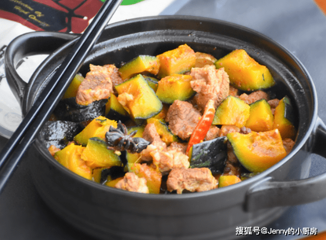 最後將切好的南瓜塊放進去,繼續燉幾分鐘。等南瓜熟透瞭,加鹽收汁即可。