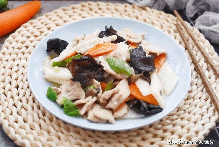 木耳提前浸泡,泡發後清洗幹凈。山藥、胡蘿卜分別去皮洗凈,切成薄片,山藥浸泡待用。