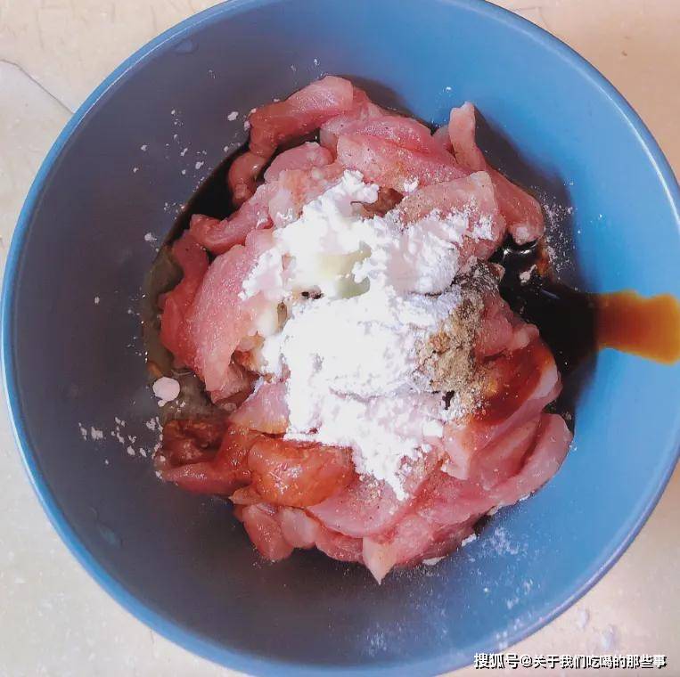 2、切好的肉不能直接炒,不然就會又老又腥,要提前醃制。醃制時有3樣調料不能少,就是雞蛋清、淀粉、食用油,能讓肉變得嫩滑可口。