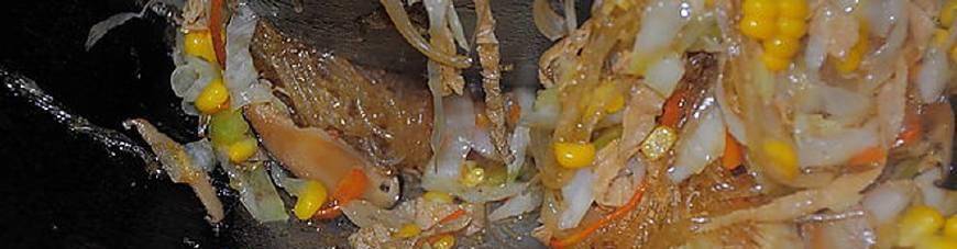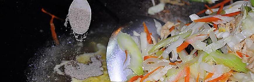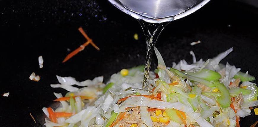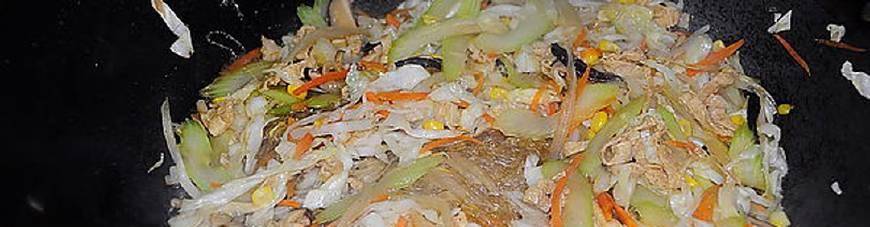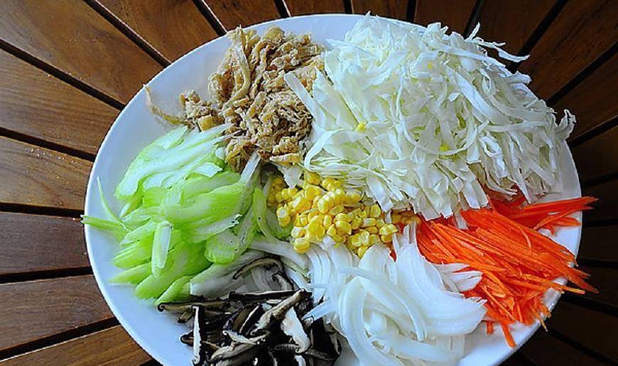 食材都可以在冰箱和儲藏室中找到。這是一份四人份的炒面。我用瞭3條細面條,4-5片燉豆腐,1/4個洋蔥,5個蘑菇和50克胡蘿卜。半個玉米,100克芹菜,其實什麼食材都不需要!您可以自由更改它。調味隻用瞭鹽、醬油、香油、胡椒粉和黑醋,食用時可根據個人喜好添加。
