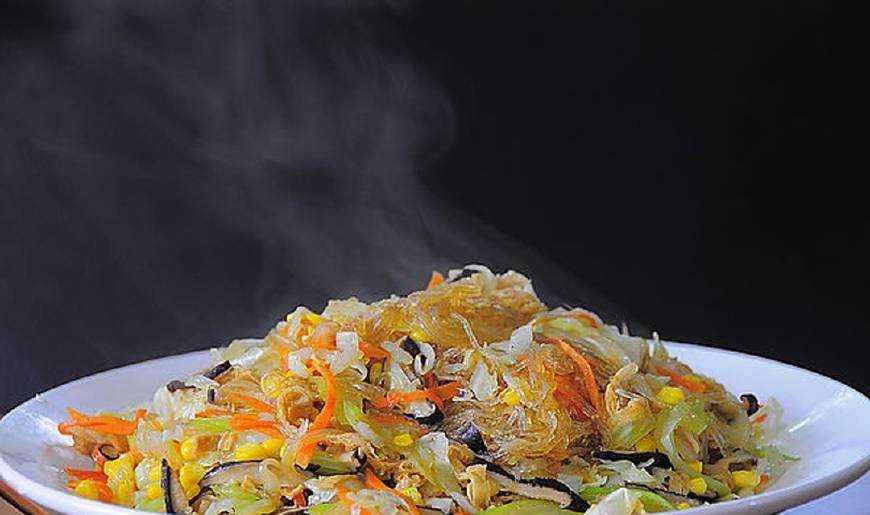 哇!你看到粉絲閃亮、柔軟、有彈性的外觀瞭嗎?看到五顏六色、味道濃鬱的澆頭瞭嗎?看到隨著香氣升騰的炊煙瞭嗎?這是真的!一點都不假!說實在的,這裡的燉豆的酥脆口感和效果真的很贊!如果你喜歡泡菜,拌入少許黑醋會讓你的味蕾飆升。雖然是素炒,但是很好吃!