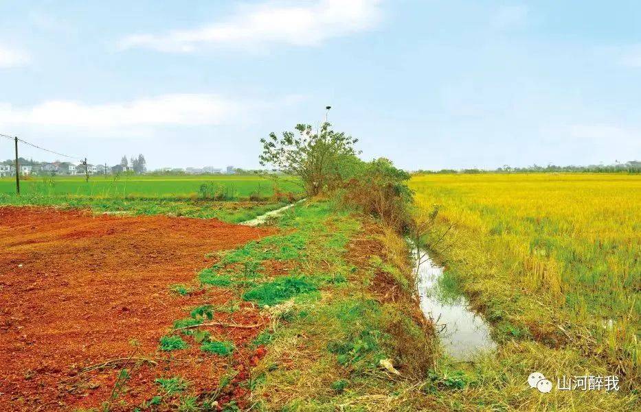湖北松滋市郊農田風光。可以看到農田一側種著小麥,另一側種著稻米,顯示出這裡地兼南北,農作物也南北兼有的地理過渡帶特征。