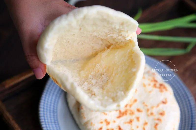 經常在早點攤上看到這種餅,一個個鼓著大泡泡,用刀從側面劃開,就像口袋一樣,往裡夾些蔬菜、肉、雞蛋、火腿腸什麼的,再淋上一些料汁,大大的咬上一口,餅松軟又不失嚼勁兒,蔬菜爽脆,辣油料汁增香,真的是特別過癮。在餓的時候來一個,會讓人覺得勝過一切山珍海味。