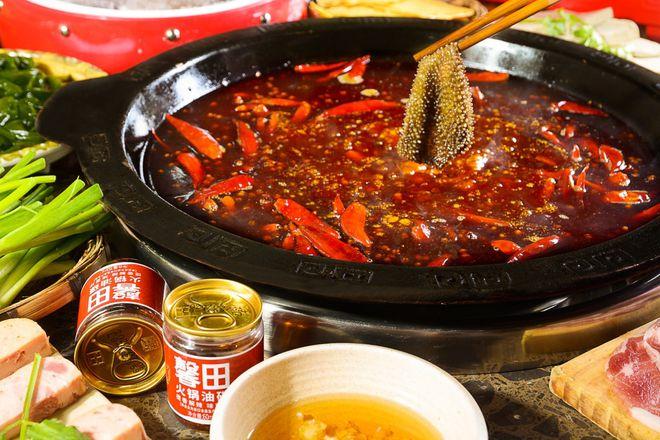 5、將火鍋爐放在火爐上,倒入適量的火鍋底料,等待開鍋後開始食用。