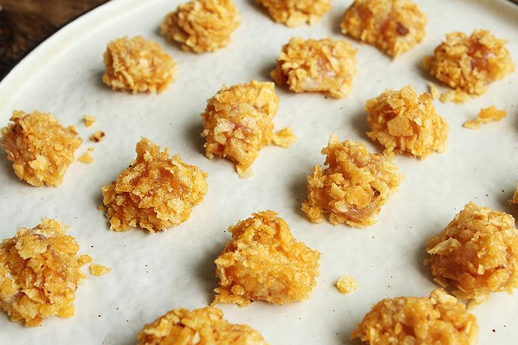 2、炸雞米花的時候,要依次放裹好的雞肉,免得炸的時候粘在一起;
