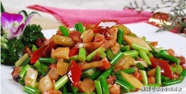 3、鍋中油燒熱,將肉絲炒熟,盛出。鍋中倒入少許油,將蔥段炒熟。