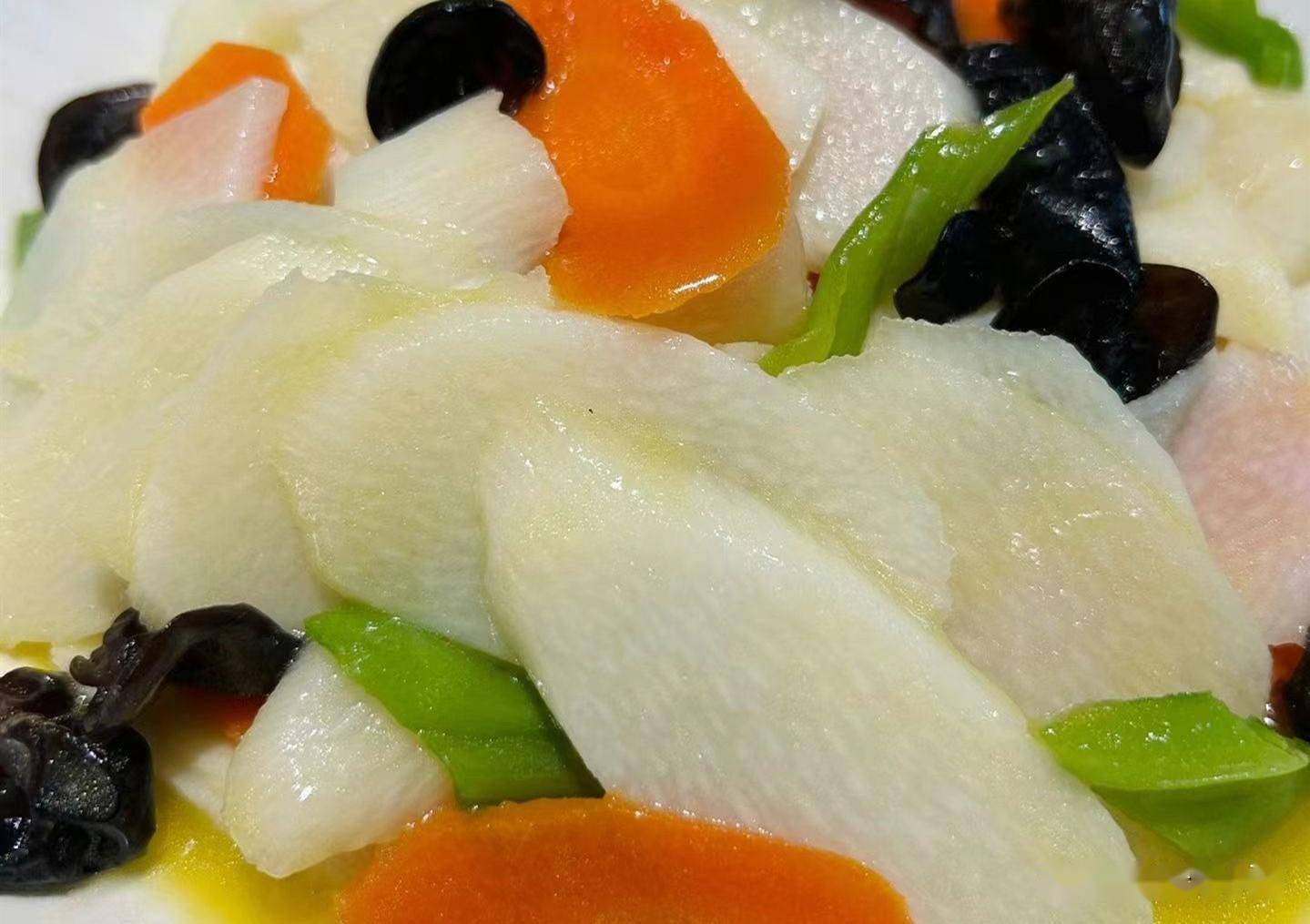 脆山藥一根、胡蘿卜半根、青椒一個、黑木耳一小撮