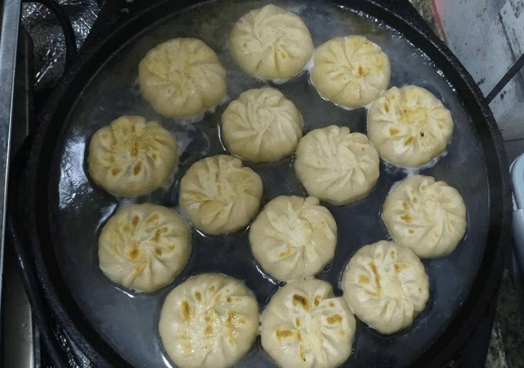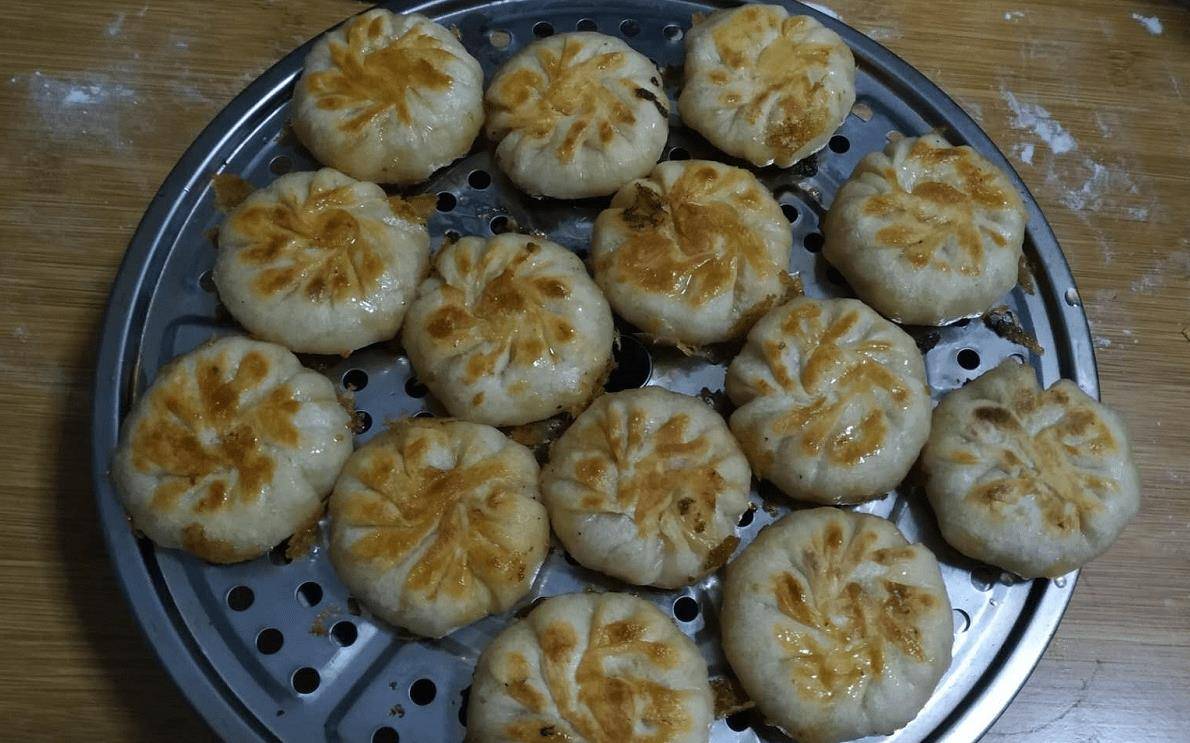 全部包好後,蓋上蓋子,開電源,烤到包子底部微微變色,然後泡一碗淀粉水或者直接往鍋裡倒一碗清水,沒過三分之二的包子包子,蓋上蓋子煮,直到水分消失。最後,我們掀開蓋子,包子就做好瞭。咬一口,感覺皮薄餡大。味道不比包子差。它有一種獨特的味道。每次做這個餡的素包子,孩子們可以吃四五個,好吃!