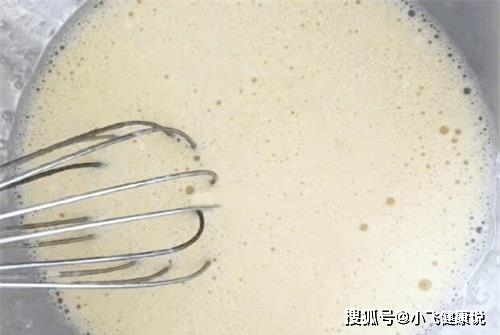 我們先把準備好的雞蛋、面粉、鹽和牛奶一起放在一個大一點的容器裡,然後攪拌均勻,做成牛奶糊。