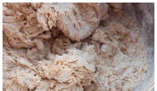 2、將500克面粉放入碗中,將紅糖液慢慢倒入面粉中,倒入時用筷子攪拌。排幹所有水分後,將面粉以絮狀形式倒入碗中。沒有幹面粉,開始揉面團,直到表面松軟,碗輕,手輕。