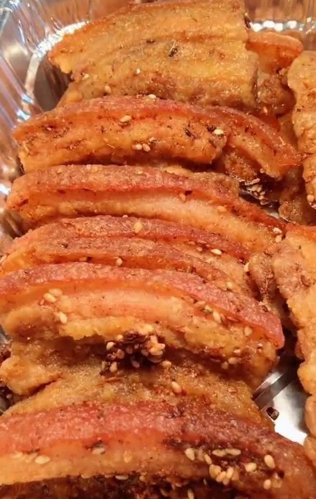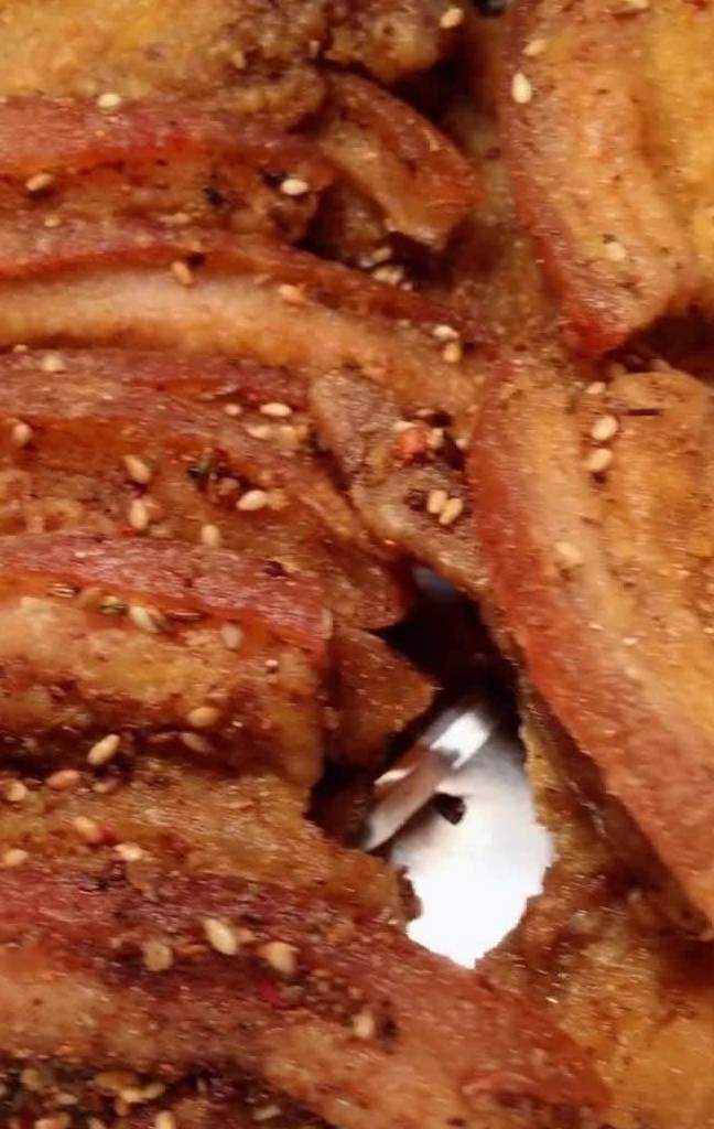 5、香酥五花肉制作完成,整個過程十分簡單,30分鐘內就搞定,口感酥脆微辣,連皮帶肉吃著特別香,學會之後記得做給傢人吃哦!