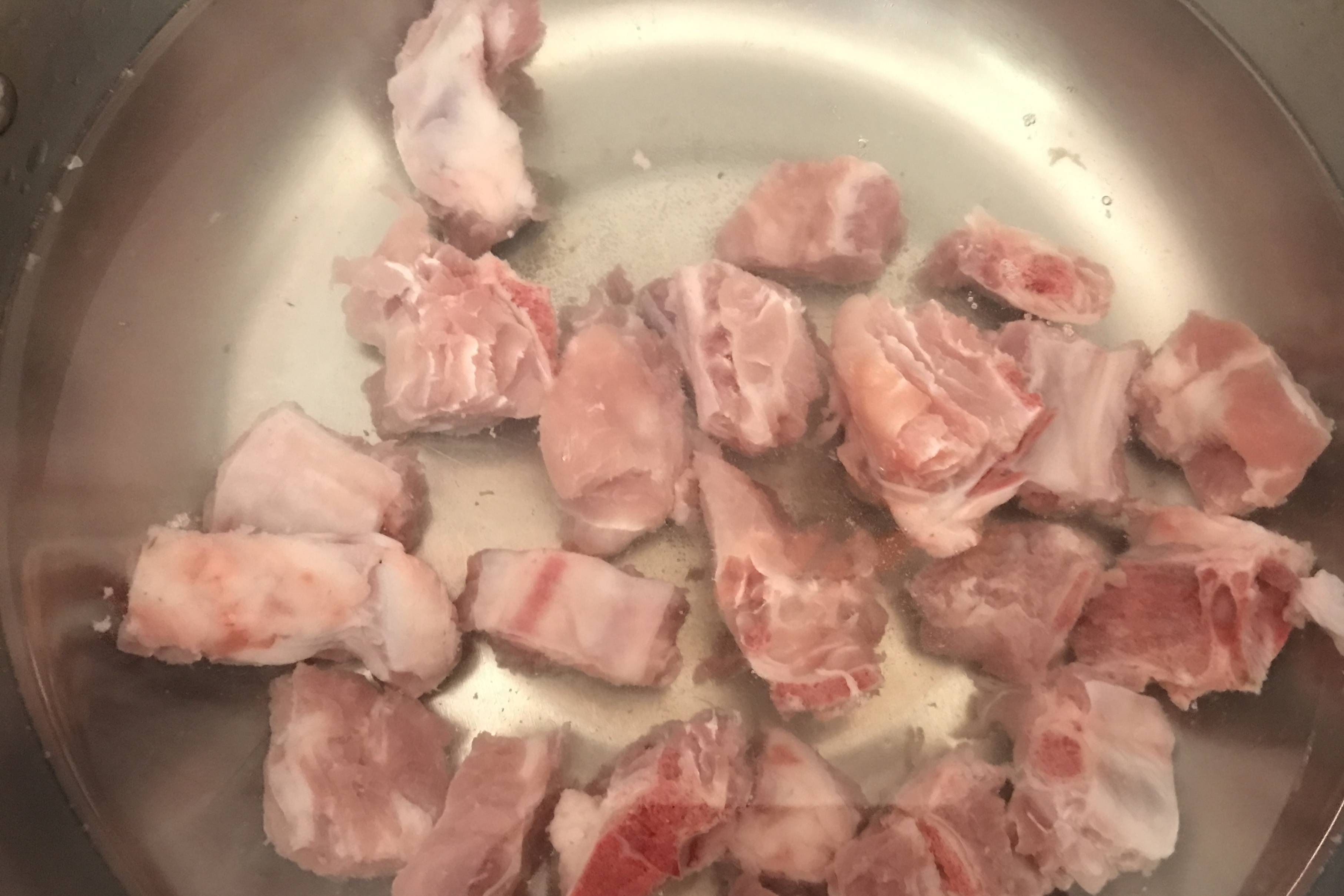 1、排骨清洗幹凈,冷水下鍋煮開,撈起清洗出血沫。排骨要冷水下鍋還才可以煮出血沫,如果熱水下鍋血沫都縮進去,便煮不出來瞭。