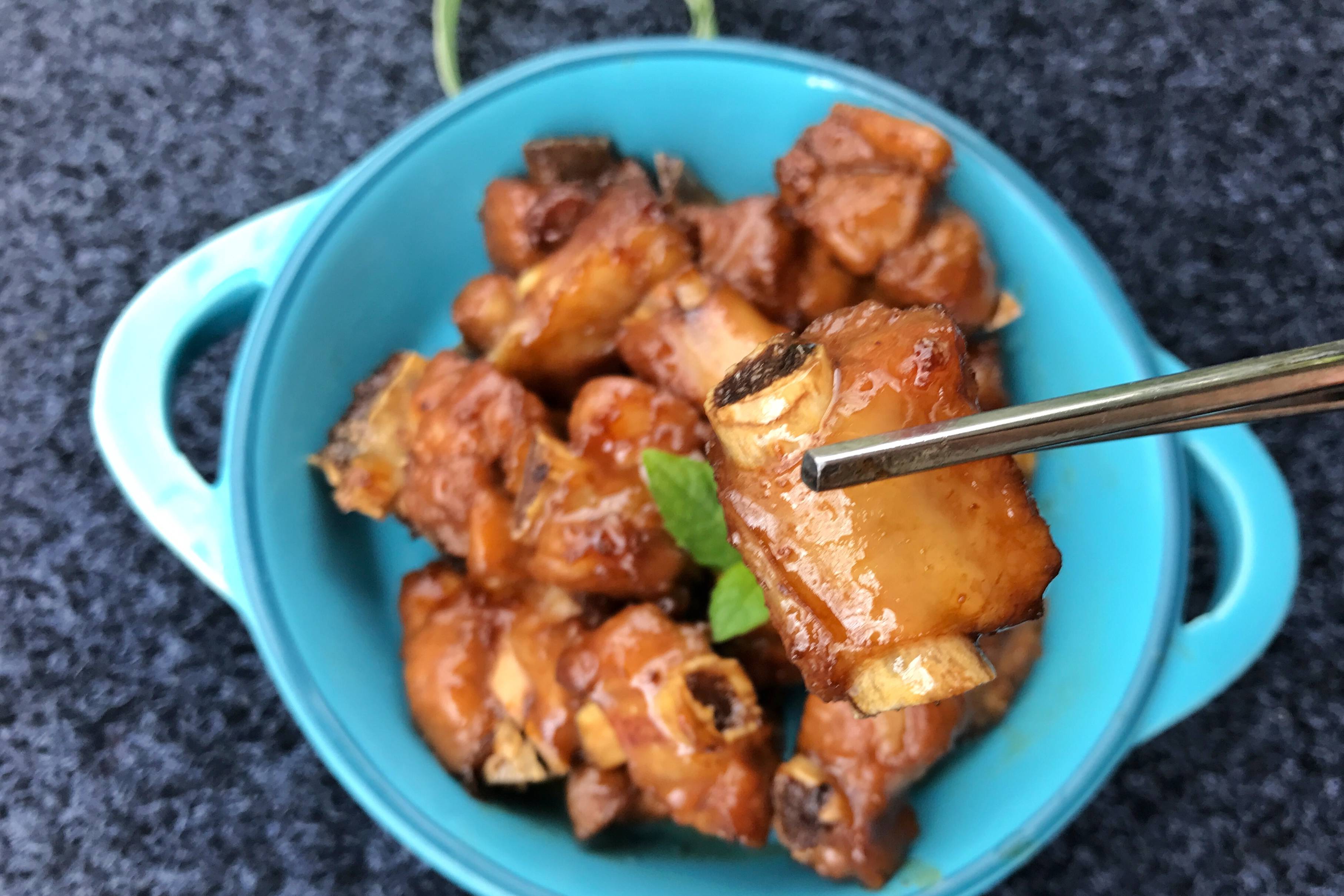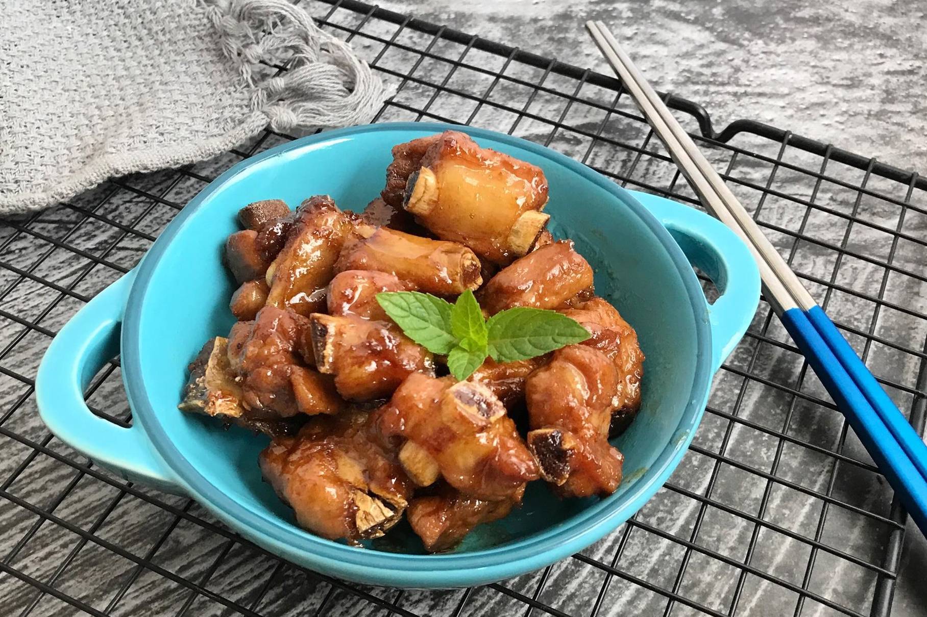 5、大火煮開後轉小火,蓋上鍋蓋燜煮20分鐘左右。怕焦的話可以時不時開蓋翻動一下。待時間差不多的時候多翻動一下,醬汁差不多收幹可以掛在排骨上瞭,即可熄火。