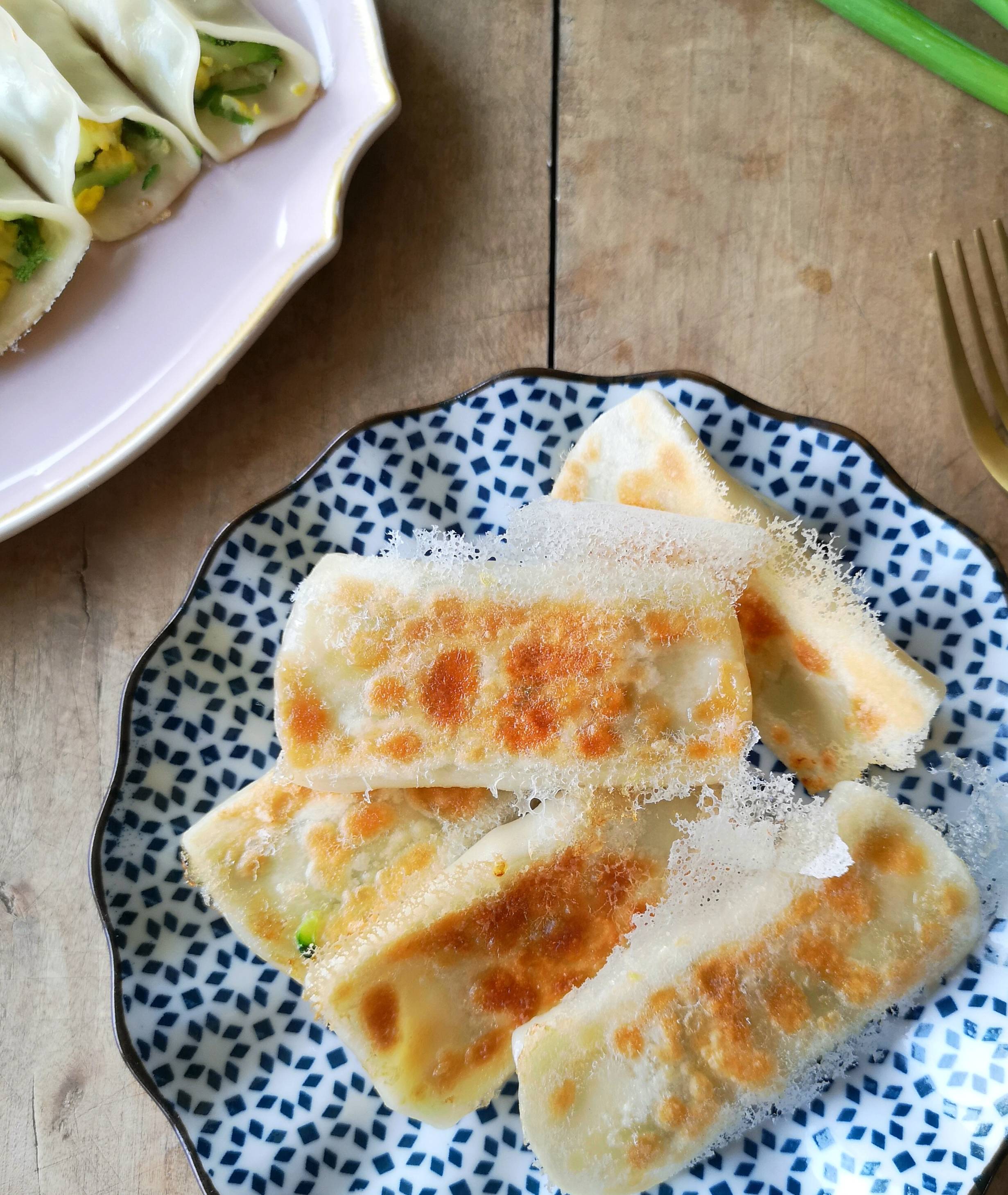 6、好吃又好做的鍋貼就做好瞭,全素餡的,一點都不比肉餡差。外酥裡嫩,鮮美極瞭。因為水中加入少許面粉,底部出現瞭蕾絲脆底,這種鍋貼又叫做冰花鍋貼。這道簡單的早餐您學會瞭嗎?學會瞭就一起來試試看吧。
