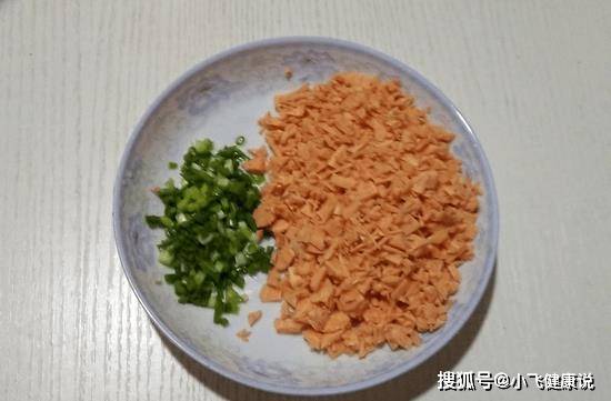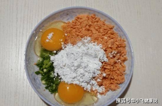 材料:紅薯一個,雞蛋兩個,五香粉一茶匙,白糖一茶匙,淀粉適量,油適量,蔥花適量。