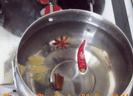 重要的第三步取出一個無水且幹凈無油的鍋,滿滿的倒入1000毫升的開水,然後放入大料和調料哦,大料都有,一小把八角、一小點香葉、一些桂皮、脆辣椒、小薑片、小花椒粒、100g鹽,鹽不要放的太多,小心咸哦。吃太多鹽對身體也不是很好。然後蓋上蓋子用大火,一定記得用的是大火,等它煮開,等上大概五六分鐘。就可以加上各種調料瞭。