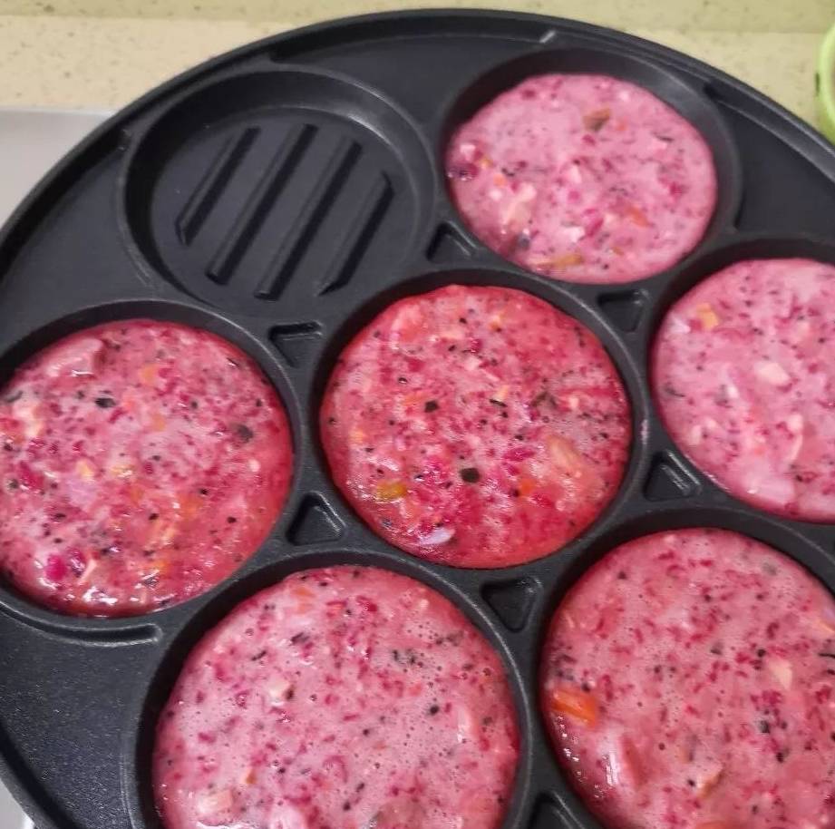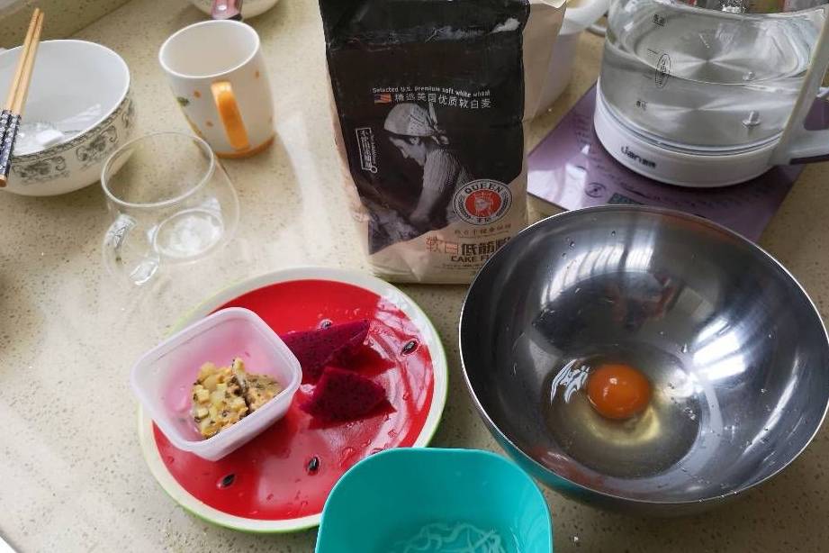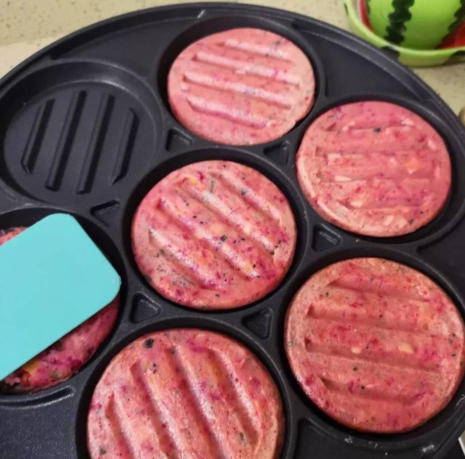 食材除瞭常見的雞蛋、面粉,還加入瞭鮮嫩的銀魚和膳食纖維含量豐富的水果——火龍果,對於