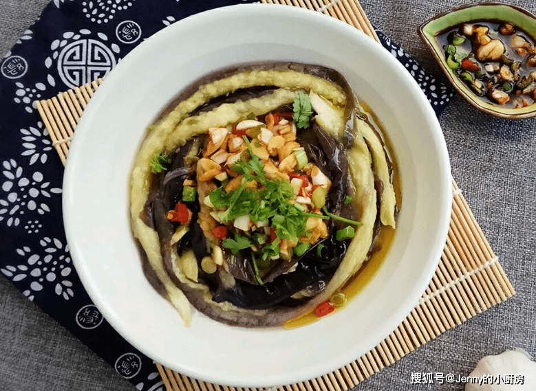 最後將料汁澆在茄子表面,再放入香菜碎或者新鮮蔥花,這道菜就做好瞭,夏天必備的一道菜,好吃不膩,十分美味。