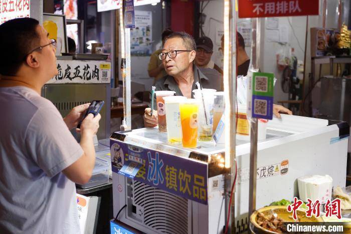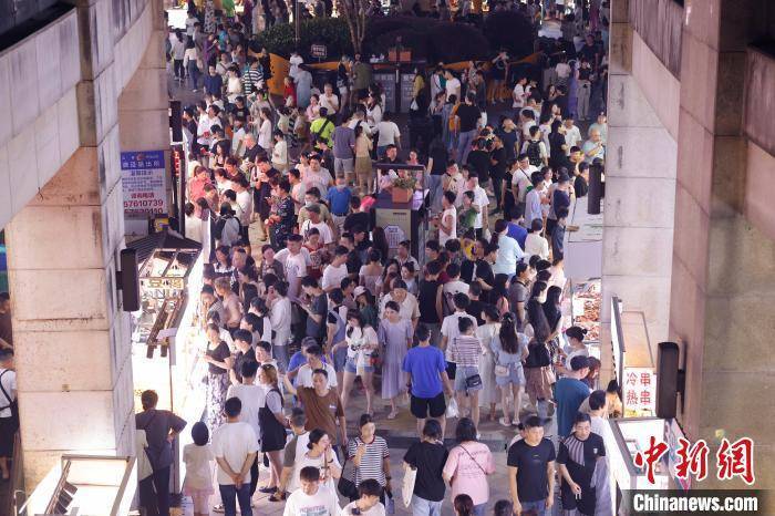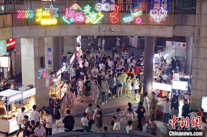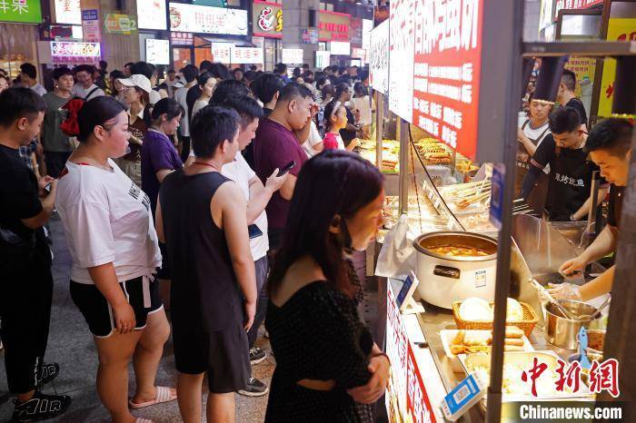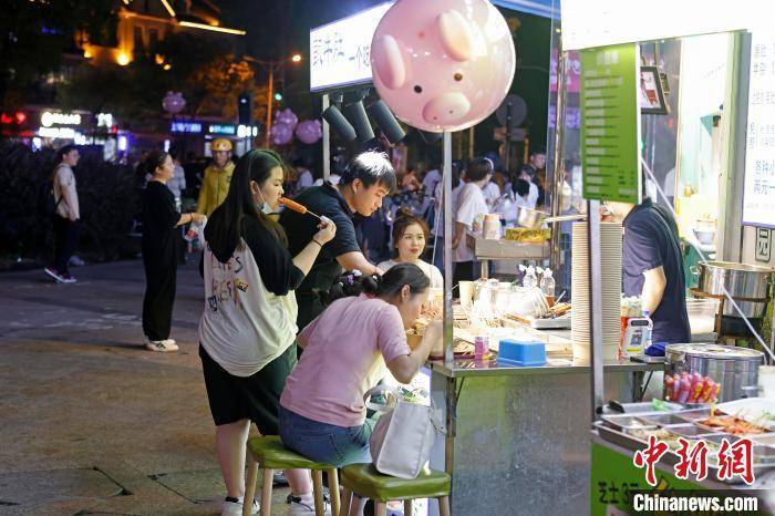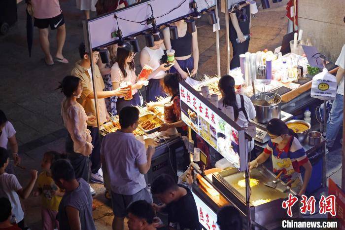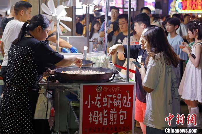 7月1日晚,民眾在位於上海市松江區三湘商業廣場內的泗涇夜市品嘗美食,這裡有著“上海最大露天夜市”之稱。約百米長的過道兩旁,匯聚瞭從南到北各式各樣的地方饗食,琳瑯滿目的攤位上,攤主們快速翻動著手中的食物,連綿的香氣不斷勾引著來往吃貨們的味蕾。據消費市場大數據實驗室(上海)監測顯示,截止到6月25日,上海6月線下夜間消費總額為427.46億元。