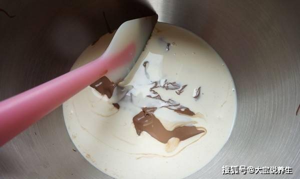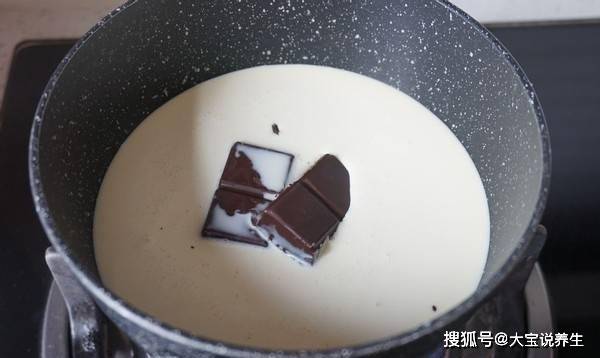 1、第一步,先準備巧克力奶油,將100克巧克力加入500克奶油中,放入裝有牛奶的小鍋中煮沸。邊煮邊攪拌,使巧克力和牛奶完全混合。