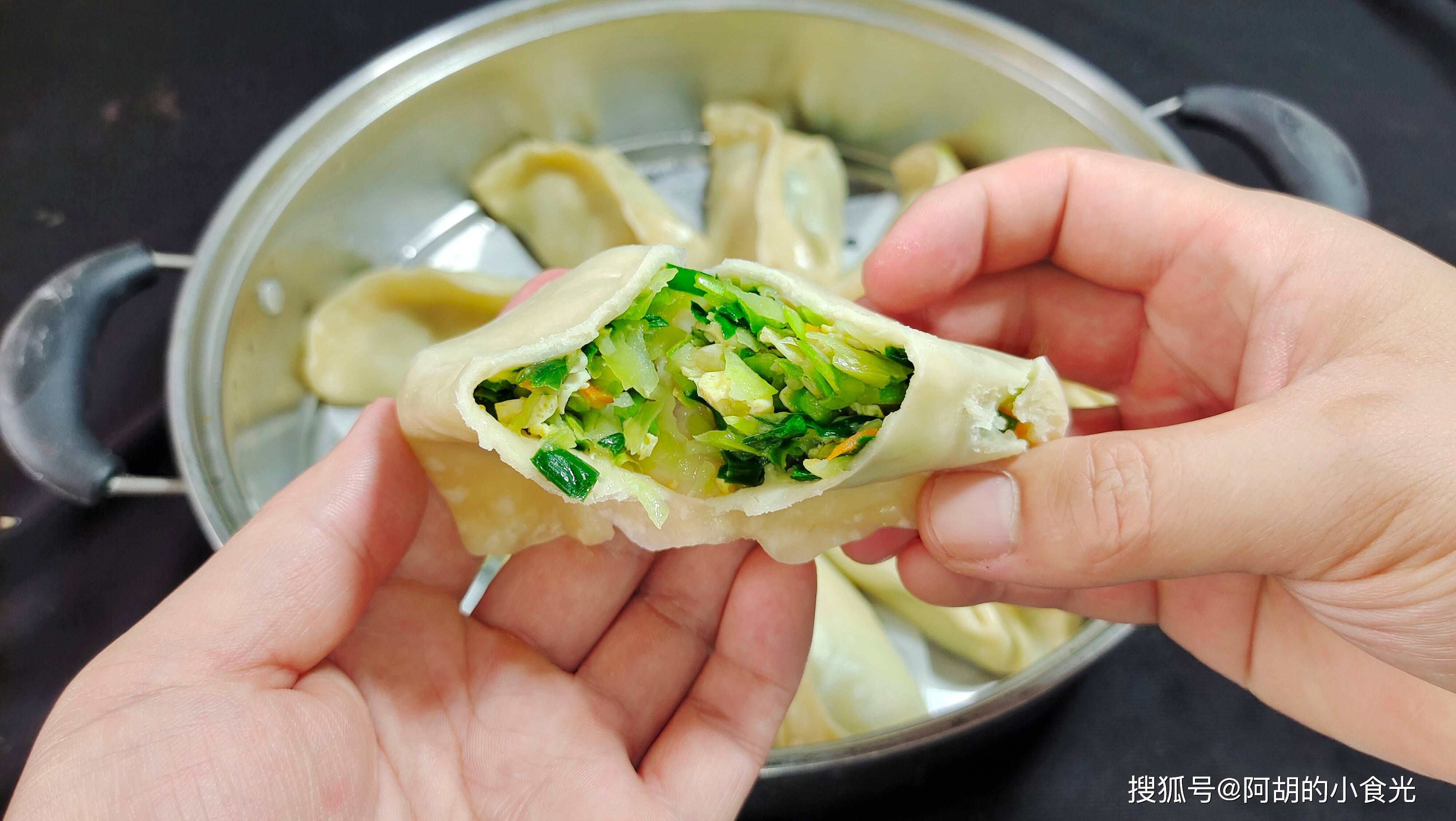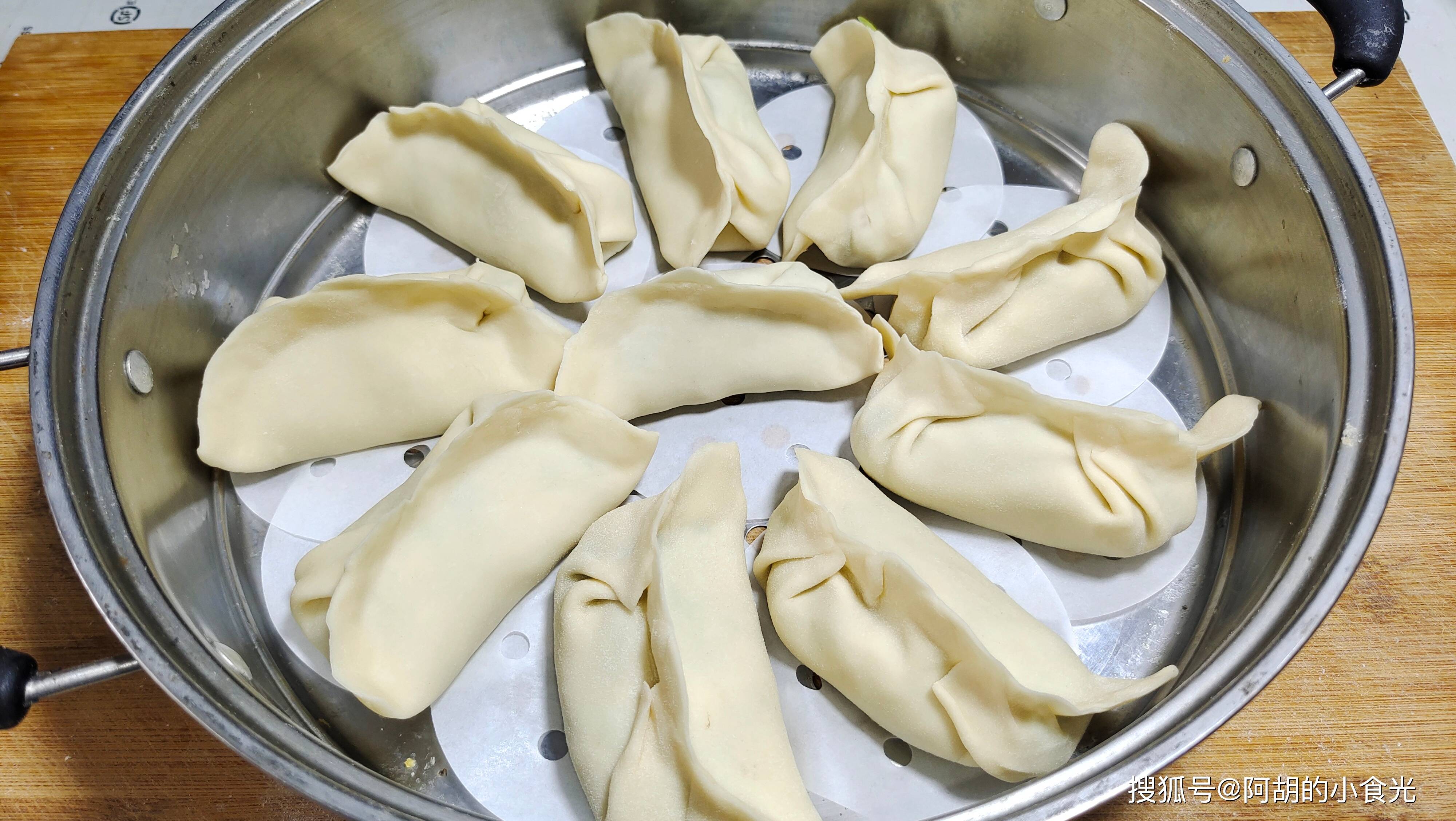 像這種純素餡的蒸餃或者包子一定別加熱太久,尤其是有韭菜的,蒸的太久韭菜就會變色發爛,影響味道。