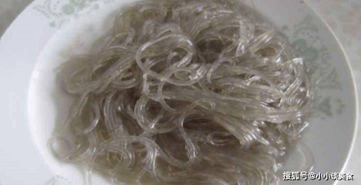 5、粉絲用開水泡軟後,瀝幹水分,切成小塊。