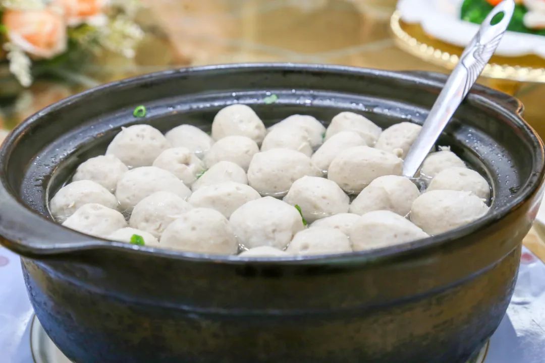 手工鯇丸都是傢制自用,是作為當地客傢人慶賀傳統佳節和婚嫁壽誕時,宴請親朋好友的一道傳統大菜。打魚丸主要選料要好,魚要選草鯇,而且要生長在水質好的魚,打出的魚丸才靚。